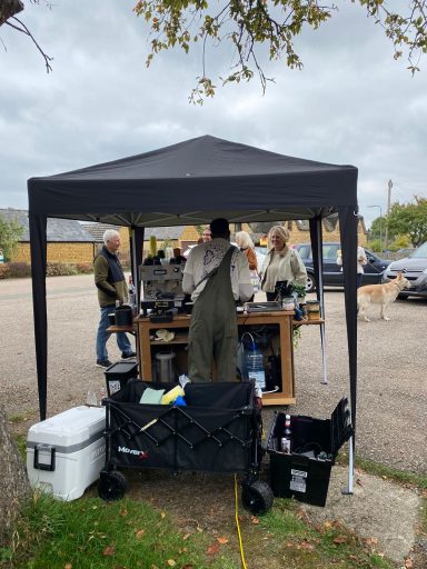 Come and join us for a friendly welcome, a drink, a bite to eat from the burger van and a chat. Worried about the weather? Tables and chairs inside too!